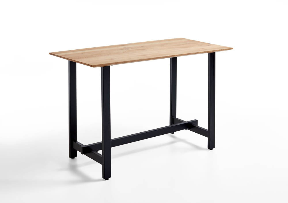 Tresentisch, Platte Charakter-Eiche massiv geölt, Facette 30mm, Gestell Eisen schwarz, LBH ca. 140/70/ 92 cm