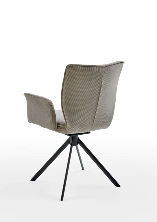 Cord, 92% Polyester, 8% Polyamid, Farbe creme, Gestell Stativ, Eisen schwarz, 360° drehbar mit Rückholfunktion, Armlehnenhöhe 65 cm, Sitzhöhe 50 cm, Sitzbreite 41 cm, Sitztiefe 43 cm, BHT ca. 61/88/59 cm