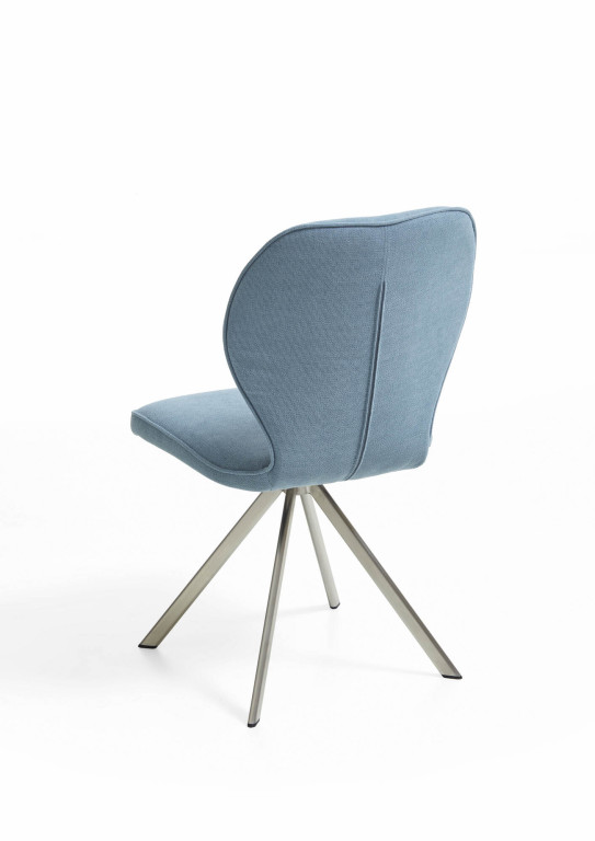 Stoff 100% PET Recycling, Farbe eisblau, Gestell Stativ Edelstahl gebürstet, 180° Grad drehbar mit Rückholfunktion, Sitzhöhe 49 cm, BHT ca. 49/92/46 cm