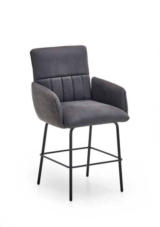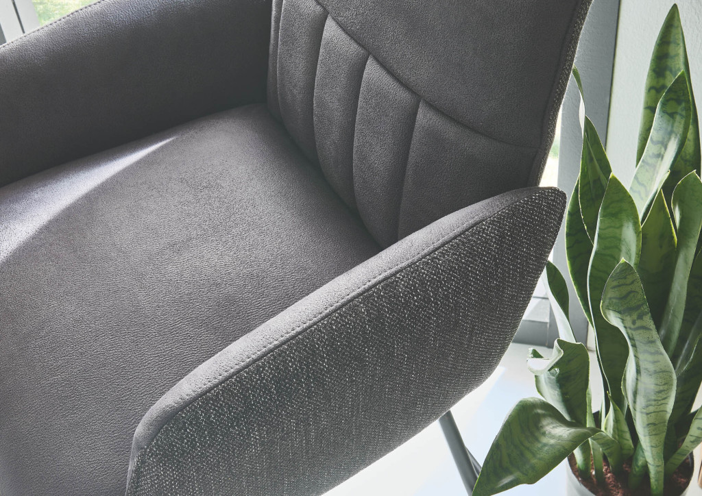 Stoffkombination, innen Struktur-Microfaser, 100% Polyester, Farbe dunkelgrau, außen Webstoff, 22% Rayon, 78% Polyester, Farbe dunkelgrau, 4-Fuß Gestell Metall schwarz pulverbeschichtet, Sitzbreite 47 cm, Sitztiefe 45 cm, Sitzhöhe 64 cm, BHT ca. 64/102/64 cm