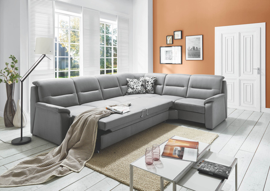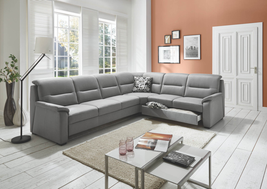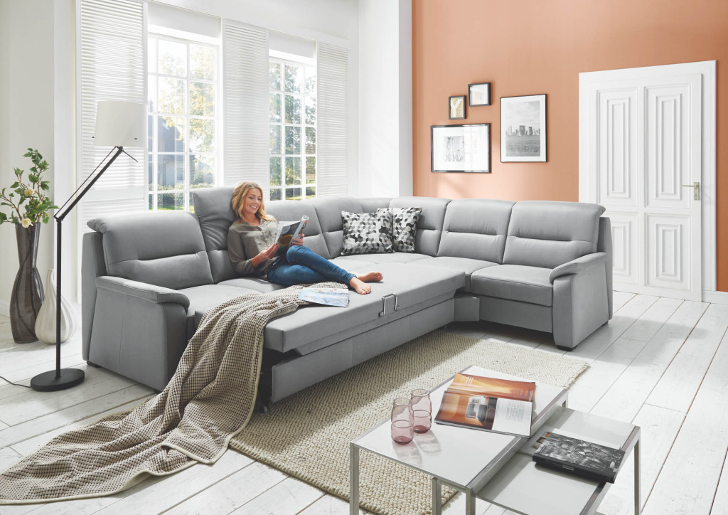 Feminin, weich und soft: Das Sofa ohne Ecken und Kanten verwöhnt seine Besitzer mit hochklassigem Komfort. Dafür sorgt der Super-Bonell-Federkern ebenso wie die stufenlose Rückenverstellung, die jede Laune mitmacht und entspanntes Sitzen garantiert. Einfach mit etwas Druck anlehnen und schon geht es in die Loungeposition. Wer sich aber gern komplett ausstrecken will, kommt bei MONROE ebenfalls in einen wahren Wellness-Genuss. Ob das bequeme Canape oder ein Sofa-Element bzw. Sessel mit ausziehbarem Hocker ¬bis hin zur Schlaffunktion – diese Polsterlandschaft steckt voller bequemer Überraschungen. Denn die formschönen Lieblingsplätze werden mit viel handwerklichem Können und einem geschulten Blick für Design hergestellt. Ganz nach Wunsch in verschiedenen Leder- oder Textil-Bezügen.