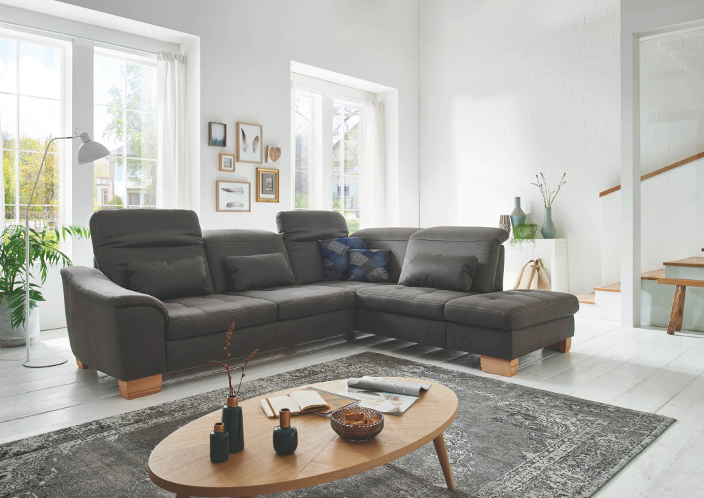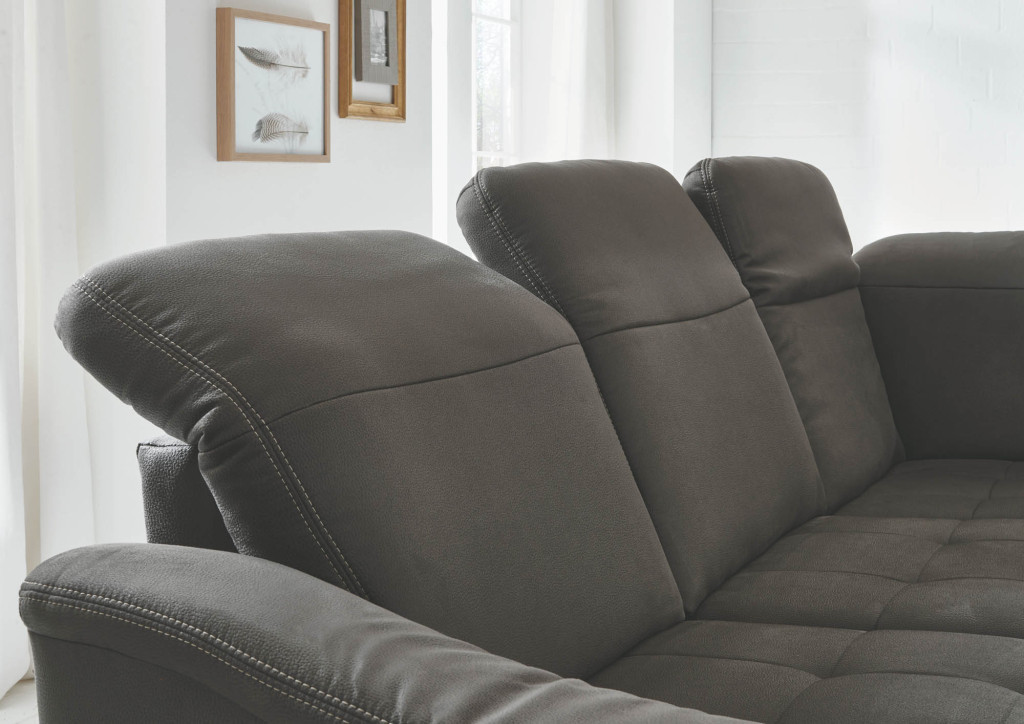 1,5-Sitzer Kombielement mit Kopfteilverstellung, Anstellhocker rechts, Rücken echt, BHT ca. 109/88-105/243 cm