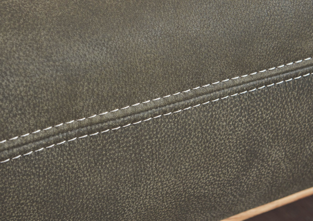 Nubuk-Anilin Leder, Farbe olive, Sichtholzrahmen Wildeiche, Rücken echt, Metallfuß schwarz, Sitzhöhe 43 cm, bestehend aus: