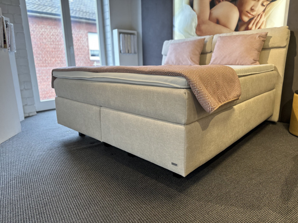 Boxspringbett LF 180x200cm-Pflegeleichter Bezug Toni Natur-TFK-Matratzen -Schwebeoptik