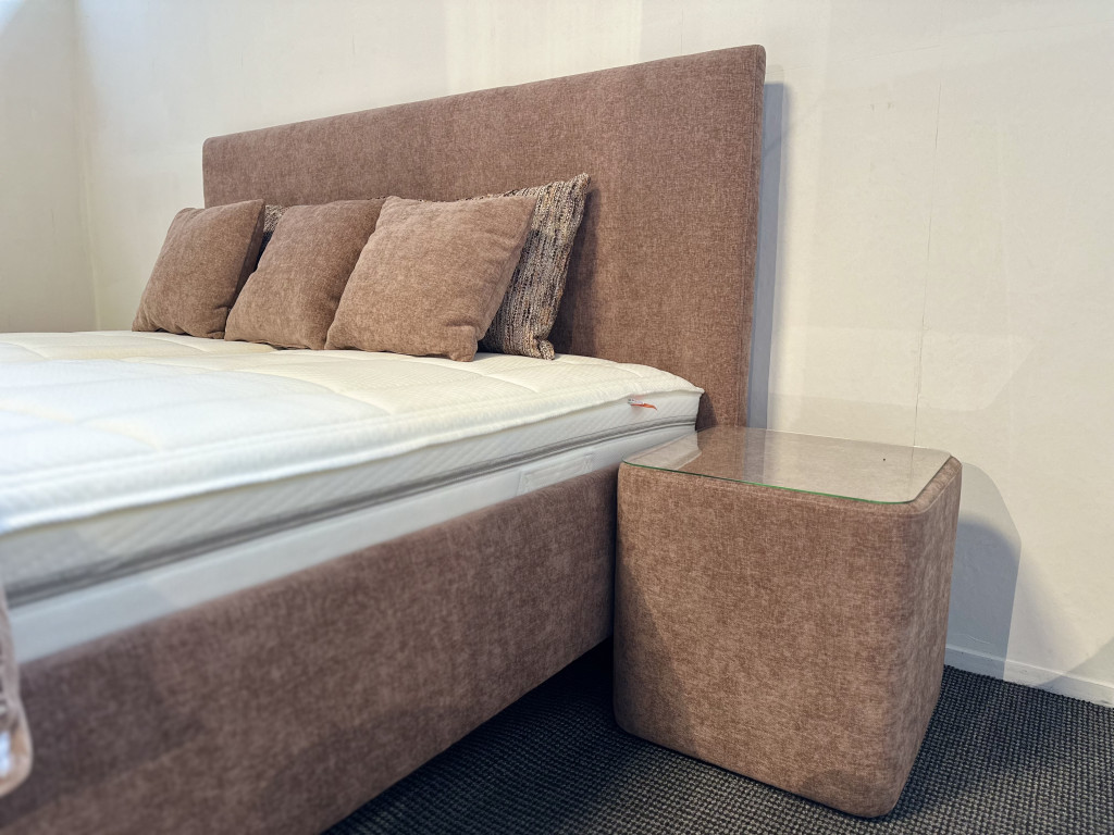 Polsterbett LF 180x200cm-Pflegeleichter Bezug Toni Siena-TFK-Matratzen -Metallfuß schwarz -2x Nachkonsole mit Glasablage